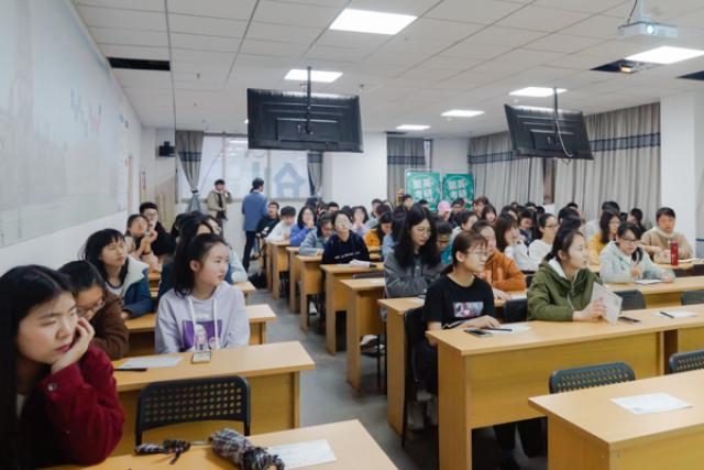 晚上六点,活动准时开始。在进行了简短的自我介绍后,明月老师向同学们展示了近几年的考研报录比图表。据悉,自实行了在职研究生和全日制研究生并行的制度,全国各高校的考研人数不断上涨,预计2020年将突破300万。2018年的研究生录取比例仅为4:1,这也说明了现今考研的难度。看到这些数据,不少同学在心里打起了退堂鼓,而明月老师则表示,提早了解考研形势不是为了让同学们灰心失意,而是提醒同学们要尽早准备尽早规划,准备越充分,成功的几率就越大。此外,她还鼓励同学们在报考学校时不要被高校的名气所吓倒,要勇于尝试。其后,明月老师又列举了一些例子提示同学们在考研前需谨慎思考自己的目标,力求一次成功。