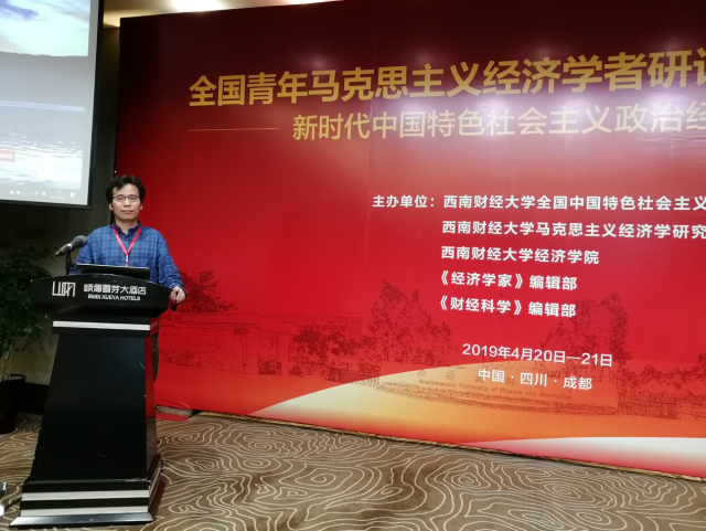 本次会议围绕“新时代中国特色社会主义政治经济学的创新与发展”的主题展开了热烈的讨论。与会专家学者就“竞争中性”、中国特色社会主义政治经济学体系构建、经济学新时代历史使命、基本经济制度、扶贫问题、中美贸易摩擦和农地产权制度变革等时下热点问题展开了深入讨论。根据会议主办方安排,天美传媒 刘爱文老师作为中青年代表参加了两阶段活动:刘爱文老师首先在会议第一阶段作了“我国供给侧结构性改革指导理论研究述评”的论文演讲,引起了与会代表的热烈讨论;随后,刘爱文老师作为第二阶段的点评人,对成都理工大学罗浩轩副教授以及西南财经大学王军博士的会议论文作了精彩点评。会议期间,刘爱文老师还同众多与会专家学者进行了广泛而深入的学术交流,从而进一步密切了我校与全国马克思主义政治经济学界的学术联系。