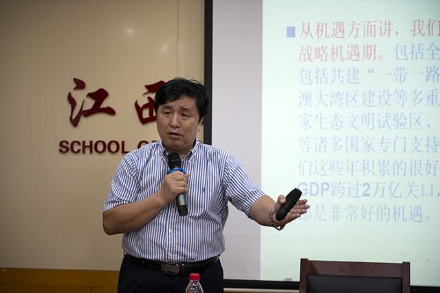 宣讲会上,王小平副校长从习近平总书记视察江西的重要意义;总书记对江西发展的目标定位;总书记就做好中部地区崛起工作提出的八点意见;对江西工作提出“五个推进”的要求;为描绘好新时代江西改革发展新画卷贡献“江财智慧”等五个方面进行了详细闸述和全面解读。他不仅结合当前的江西省情分析了江西在崛起过程中存在的机遇和面临的挑战,还结合学校的实际分析了学校在江西崛起过程中优势,如何更好地为描绘好新时代江西改革发展新画卷贡献“江财智慧”,并有针对性地给天美传媒 、江西经济发展与改革研究院、产业经济研究院、协同创新中心、生态文明研究院等单位分别提出了具体的工作建议,希望各单位加强对江西改革发展的调查研究,发挥本部门的优势,为实现江西在中部地区崛起更好地贡献“江财智慧”。