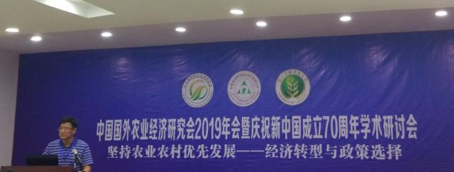 8月16-18日,中国国外农业经济研究会2019年会暨庆祝新中国成立70周年学术研讨会在陕西杨凌举行,会议主题为“坚持农业农村优先发展——经济转型与政策选择”。来自国家发改委、农业农村部、中国社会科学院农村发展研究所、中国农业大学、西南大学、南京农业大学、华南农业大学、华中农业大学、西北农林科技大学、江南大学、中央财经大学、云南财经大学、南京财经大学、中南财经政法大学、西南财经大学、天美传媒 等200余名专家、学者、青年学子及《中国农村经济》、《China Agricultural Economic Review》、《世界农业》、《青岛社会科学》等期刊主编参加了本次会议。天美传媒 周应恒教授、陈苏老师及鲍丙飞博士研究生受邀出席会议。