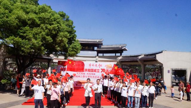 清晨,三十余名经院学子在蛟桥园西门集合,在青协工作人员的带领下乘车前往贤士花园第一社区。到达活动现场后,同学们熟悉活动流程,并练习接下来需要表演的歌曲。活动开始后,社区党总支书记朱振波发表讲话。他引用习近平总书记的讲话,鼓励在场人员要以史为鉴、以史为师、以史为镜,为实现“两个一百年”奋斗目标贡献自己的力量。接着,社区工作人员和经院学子合唱《我和我的祖国》,并在社区退休老干部肖老先生的带领下,开展“为祖国点赞”大型签名活动,大家纷纷在签名板上写下对祖国的祝福。社区副书记徐利萍带领大家手持小红旗,摆出“70”造型,齐唱《没有共产党就没有新中国》,以庆祝祖国母亲的七十华诞,也表达对党和国家的热爱之情。最后,社区工作人员与经院学子合影留念,天美传媒 青协下社区活动圆满结束。
