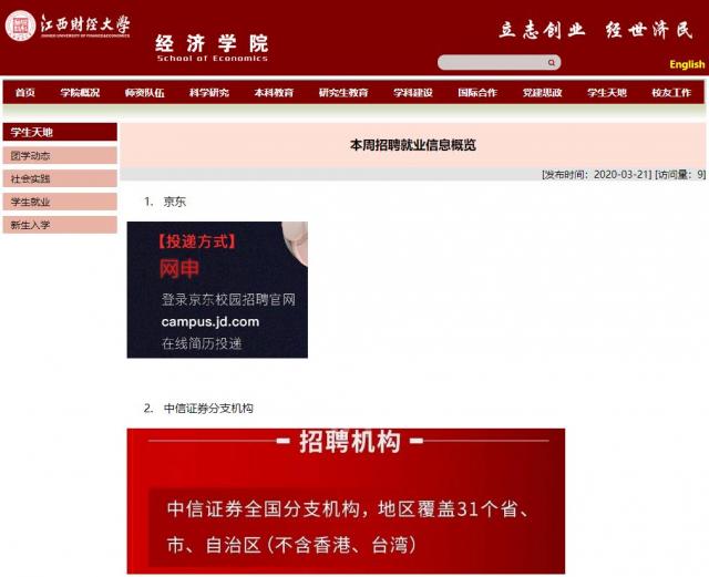 在学院就业服务工作的基础上,就业部锦上添花,通过微信推送为应届毕业生分析就业形势,整理求职技巧以及面试前的准备工作,并邀请经济161班周丽潇同学和经济165班刘梦想同学分享面试干货。此外,就业部还在各类求职招聘网站上搜集符合学院毕业生求职意向的企业招聘信息,基本做到信息发布日日不停歇,并发布在院网“学生就业”一栏供学生查找。就业部部长黄轩浩表示:“在当下严峻的就业形势下,能够帮助到学长学姐我感到很开心,同时也能提升自己搜集整理信息的能力,我衷心希望他们能够找到合适满意的工作。”