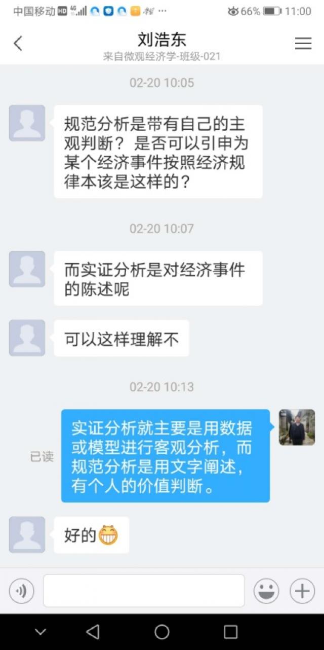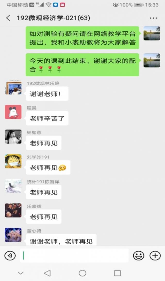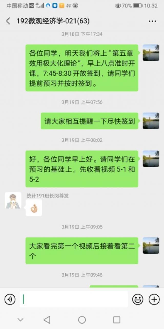 目前,我已经上了6周的网络录播课。在此过程中,我在课前都会做好充分的准备,在课堂时间会给学生仔细讲解各章知识点中的重点和难点,要求学生课后认真复习。在疫情面前,用自己的最大的努力来上好每一堂网课。据学生们反映,在他们听语音录播课的过程中,声音清晰,很少出现比较卡的情况,偶尔会出现网络延迟。他们肯定了我这种线上教学模式,认为这种模式要比只答疑、不讲授课程的模式要好,他们收获得更多。同时,从每次课堂测验的成绩可以看出学生对当堂课程掌握的程度,以及哪些知识点掌握不到位,可以在下次课上课的时候再复习一下,有的同学没有听懂的地方,也会在微信群中当场提出来,老师可以当场解答,效果比平时课堂上课还要好。每次上完课学生都客气地和老师再见,以及谢谢老师。