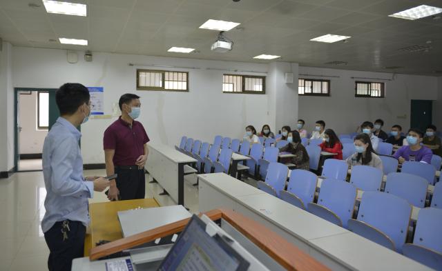 5月20日返校复课第一天,张利国院长、邹春发书记深入教学一线,对教师到岗、学生到课以及教学运行、教室防疫安排、教学设备的使用运行情况等方面进行了认真细致的检查和督促。就课堂教学过程中防疫防控应注意的问题,在上课前与任课教师和学生作出强调和要求。