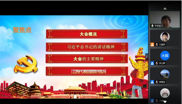 李秀香教授以“凝心聚力再出发,乘风破浪更远航——聚焦十三届全国人大三次会议”为学习主题,从四个方面向师生深入讲解了全国两会精神。一是大会概况。李教授用“特别”和“高效”两个词概括今年两会的特点,“特别”是指这场在疫情期间的大型政治会议,充分彰显了我国的制度自信,“高效”在于大会通过了民法典和《关于建立健全香港特别行政区维护国家安全的法律制度和执行机制的决定》等一系列重大决议。二是学习习近平总书记讲话的重要精神。李教授带领大家深入学习了习近平总书记在全国人大内蒙古代表团审议、全国政协经济界委员联组会、全国人大湖北代表团审议、全国大人解放军和武警部队代表团全体会议上的讲话重要精神,总书记特别强调“人民至上”执政理念、数字农业发展、战略性新型产业链及粮食问题等重要内容。随后,李秀香教授对2020年政府工作报告作出了解读,报告分为工作回顾、发展目标和总体部署、着力稳企业保就业、增强发展新动能等八个部分。她结合自己的研究,认为民生和就业问题是重心,同时也对“地摊经济”政策、“六稳六保”工作、“两新一重”建设等热点问题提出自己的见解。三是大会主要精神,李秀香教授从十三届全国人大二次会议以来的主要工作着手,带领大家学习了全国人大常委会工作报告、最高人民法院工作报告、最高人民检察院工作报告的主要精神。四是江西代表团履职情况,李秀香教授通过具体数据,展示了江西代表团参加全国两会期间履职尽责,并解读了自己提出的“关于建立加强外国留学生管理法”的议案和加强护工行业管理、网络游戏防沉迷平台等建议。在最后,她鼓励同学们认真学习两会精神,积极了解国家政策,提出合理化建议,为国家建设献力。