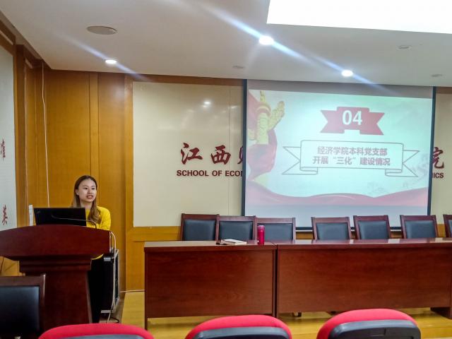 接着,在展示天美传媒 本科党支部开展“三化”建设情况过程中,万婧怡同志向学生党员们强调了学生党员作为学生中的先进分子,应在树立大学生形象,引导广大学生树立正确的人生观价值观方面起到积极作用。各位学生党员应当以身作则,发挥党员先锋模范作用。