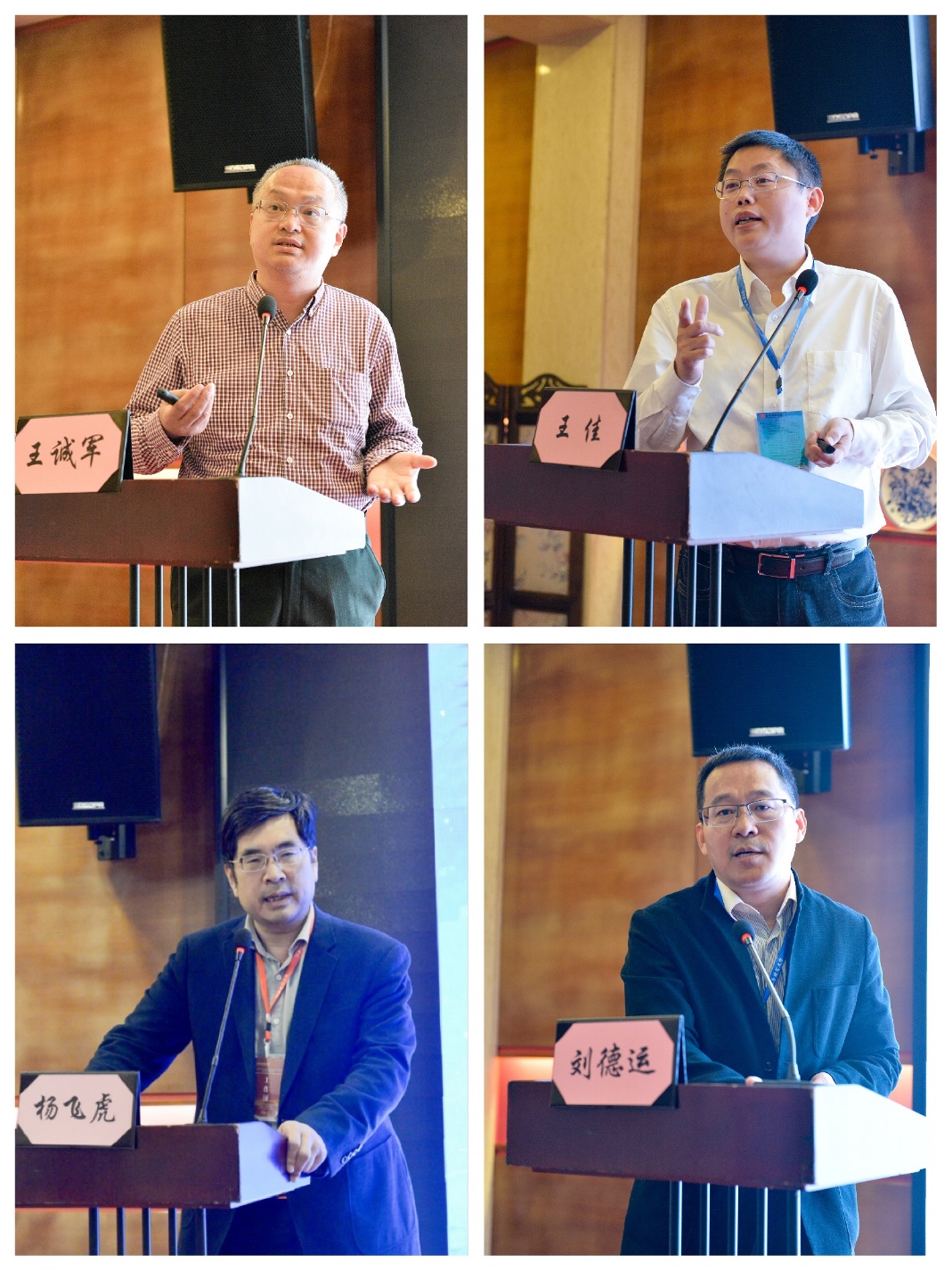 图为主题报告嘉宾王诚军先生(左上)、王佳副教授(右上)、杨飞虎教授(左下)、刘德运副教授(右下)