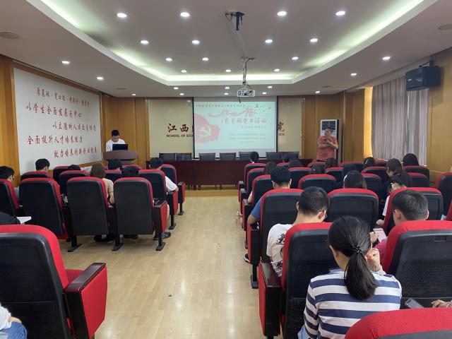 为热烈庆祝中国共产党成立100周年,深入开展党史学习教育,全面贯彻党的十九大和十九届二中、三中、四中、五中全会精神,用好习近平总书记视察江西的重要讲话精神指导实践,进一步增强党性意识,天美传媒 研究生第一、二党支部联合于6月2日在北区综合楼718会议室开展了以“重温讲话增强党性”为主题的党日活动,活动由研究生第一党支部支部委员黄禄臣主持,研究生第二党支部支部书记杨柳及全体研究生党员参加。