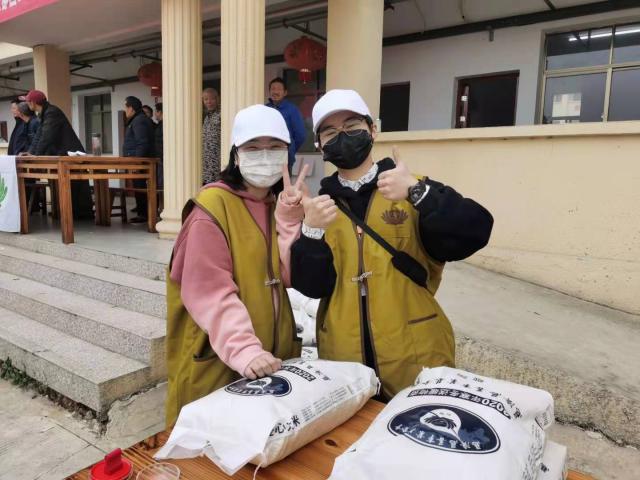 2020年12月25-17日,曹钰莹与同学一起前往都昌县敬老院,为敬老院老人发放粮食