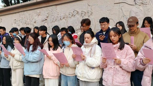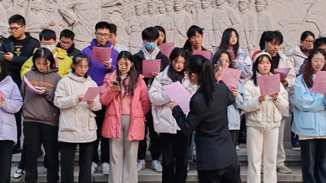 12月6日,悠扬的旋律在红色摇篮文化广场响起,“宪法歌曲传唱”活动正式展开。领唱人领唱《宪法伴我们成长》,广大经院学子纷纷跟唱,歌声充满活力与朝气,同时又饱含崇敬之情,优美的歌声响彻整个广场。声声入耳,字字入心,法治的精神浸润了同学们的心田。