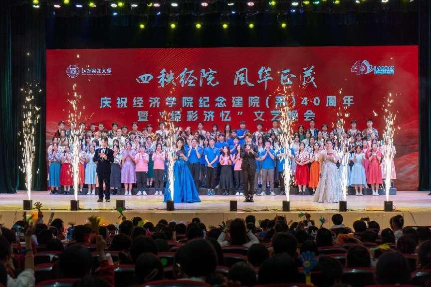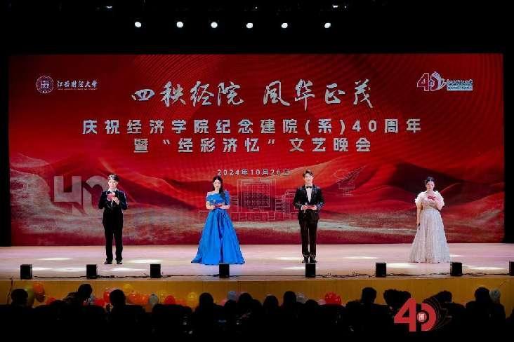 四秩经院,风华正茂。10月26日晚,天美传媒 庆祝建院(系)40周年暨“经彩济忆”文艺晚会于蛟桥园大礼堂举行。学院院领导、离退休教师代表、校友代表、教师代表及学生代表1000余名师生欢聚一堂,现场观看。广大师生校友、社会各界朋友23万人通过网络直播于云端共襄盛会 。