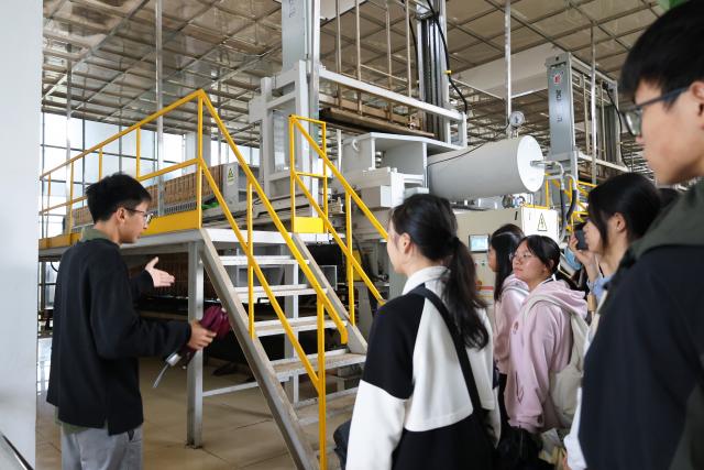 随后,在生产负责人彭骁引领下,同学们走进了污水处理厂生产厂区,沿着污水处理各环节,一步步地观察、记录、思考。在“提升泵房”,看到了污水被提升后送入后续处理环节的场景;在“沉砂池”和“二沉池”,见证了污水经过沉淀后的变化;而在“污泥处理站”,深入了解污泥的处理和处置方式。现场教学过程中,生产负责人多次强调,此类复杂的生产过程所需人力劳动较少,主要是工作人员在中控室通过电脑远程操控,大大提高了污水处理的效率和质量。