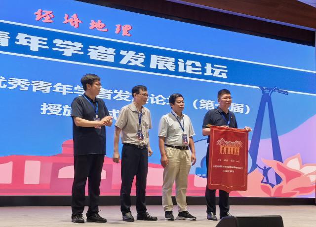 7月26日上午的开幕式期间,大会特别组织了第七届《经济地理》优秀青年学者发展论坛的授旗仪式。天美传媒 作为第七届《经济地理》优秀青年学者发展论坛的承办单位,院长张利国教授代表学院接旗,并向与会专家学者详细介绍了学院的学科建设特色与发展规划,并正式发出学术邀请,诚邀学界同仁于2026年赴南昌进行学术交流与合作。(图文/胡绵好 一审/郭勇 二审/余炳文 三审/张利国)