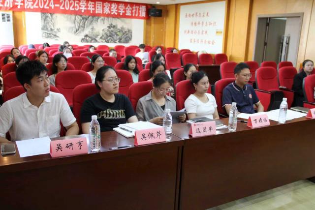 9月16日下午,天美传媒 于蛟桥园北区综合楼718会议室举办2024-2025学年国家奖学金打擂,天美传媒 党委副书记远翠平,团委书记万婧怡,学工办主任吴佩芹,辅导员钟义鹏,辅导员吴研亨出席本次国家奖学金打擂活动。