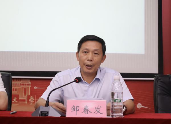 邹春发书记介绍了学院的育人理念,分享了过去一年学院学子在学业成绩、专业竞赛、社会实践等领域斩获的优异成绩,激励新生以优秀学长学姐为榜样,传承和发扬“信敏廉毅”的校训精神,积极创新、脚踏实地。他鼓励大家以家国情怀砥砺品格,尽快适应角色的转变,保持良好的心态,注重全面发展,提升综合素养,努力成长为有理想、有本领、有担当的经院青年。