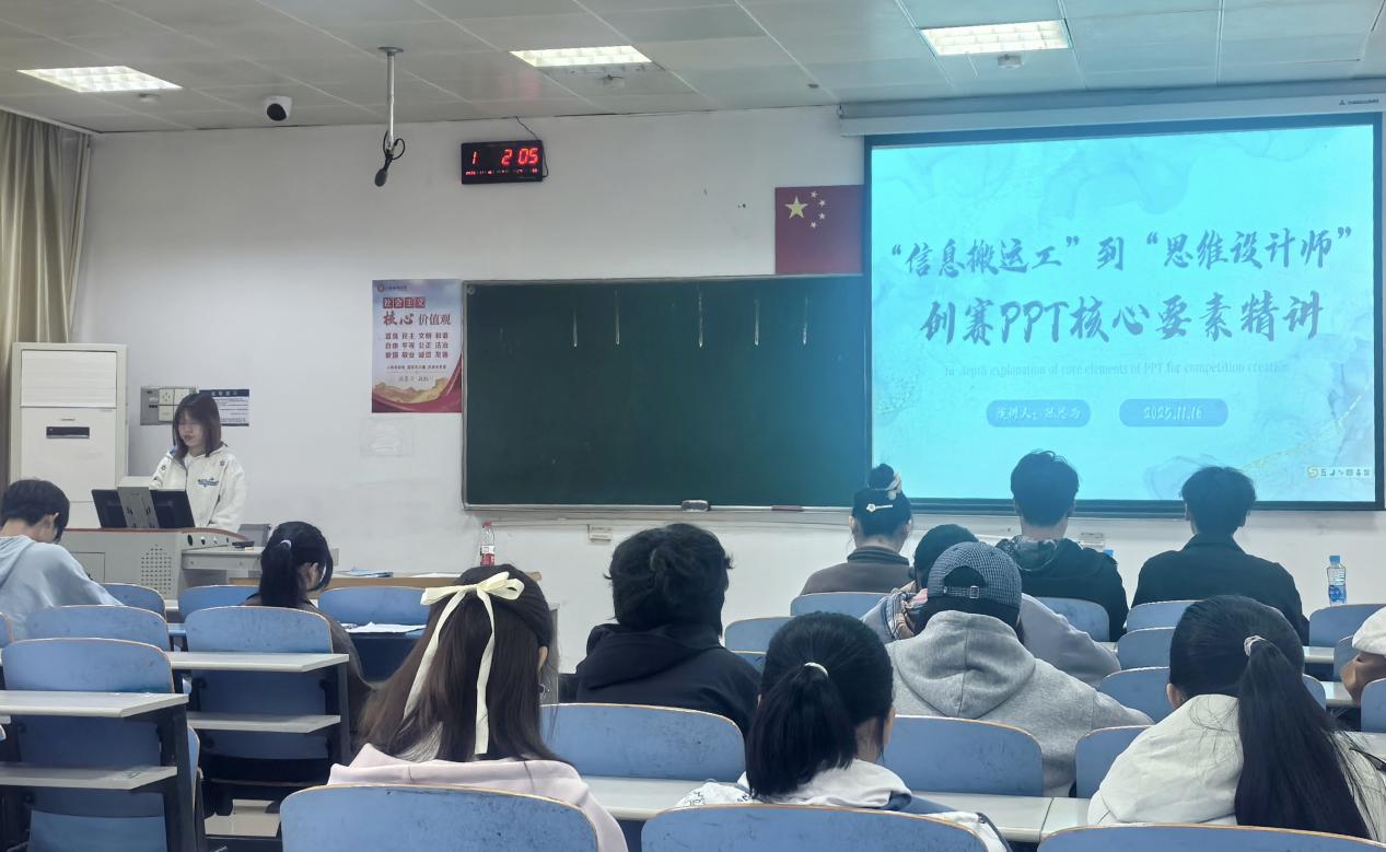陈思雨同学以PPT美化为核心,利用自身专业优势对字体、排版、色调等方面进行细致讲解,强调好的PPT的重要性,指导通过视觉效果提升来辅助突出重点,增强项目展示的说服力。