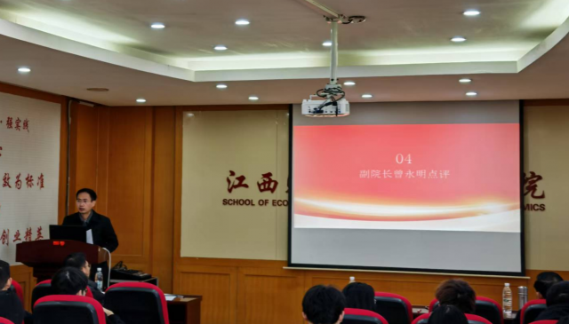 副院长曾永明对两位同学的微党课进行了点评。他首先高度肯定了本次微党课的理论深度与实践价值。他强调,微党课作为学院党建创新品牌,需持续聚焦“学思用贯通、知信行统一”,未来将通过“专题研讨+实践调研”相结合的方式,进一步提升学习成效。