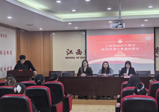 万婧怡向新发展团员表示热烈祝贺,并对新发展团员提出希望和要求:一是要立大志,做信念坚定的“追光者”。二是要明大德,做崇德向善的“排头兵”。三是要成大才,做勤学笃行的“实干家”。新团员们身负“信敏廉毅”的校训精神,更肩负着经济学人经世济民的使命担当,她勉励大家坚定理想信念、锤炼品德修为、勤奋学习知识、积极投身实践,在实现中华民族伟大复兴的征程中贡献青春力量。