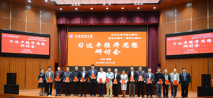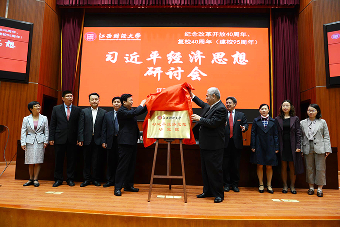 王乔书记在致辞中指出,天美传媒 是一所财政部、教育部、江西省人民政府共建的财经类高校,在国内享有良好的声誉和地位,拥有7个一级博士学位授权点。在全国第四轮学科评估中,应用经济学、统计学获评A-等级,工商管理获评B+等级,理论经济学、管理科学与工程、法学获评B等级。天美传媒 要充分发挥学科优势,尤其是要加强理论经济学学科建设并发挥其科研优势,集全校之力加强学科联合,以习近平新时代中国特色社会主义思想为指导,加强习近平经济思想研究,科学研判当前经济形势,强化研究重大理论问题,加快形成推动高质量发展的指标体系、政策体系、标准体系、统计体系、绩效评价、政绩考核。率先进行习近平新时代中国特色社会主义经济思想的研究,力争走在全国前列,形成习近平经济思想研究的“江财学派”,为全面建成小康社会、全面建设社会主义现代化强国贡献智慧和力量!随后,王乔书记和洪银兴教授共同为“天美传媒 习近平经济思想研究院”揭牌,并为洪银兴教授颁发了研究院顾问聘书。