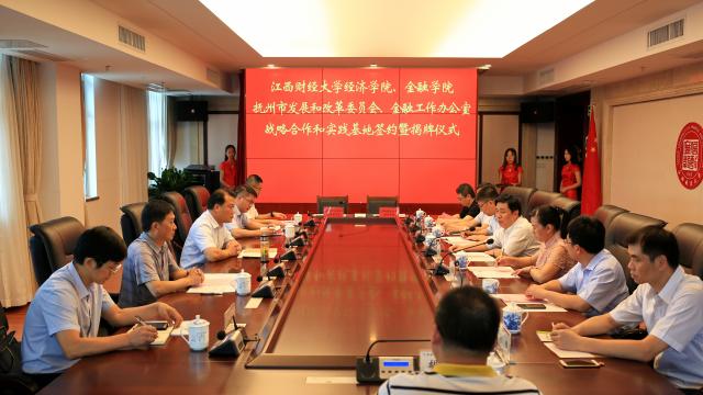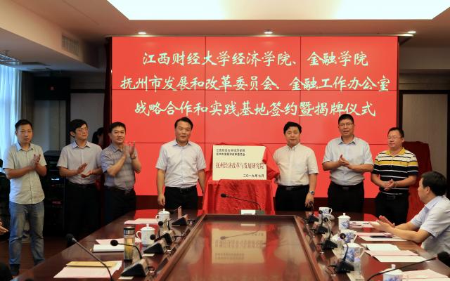 签约仪式上,院长张利国与抚州市发展和改革委员会主任帅歌柳签署了双方共建“抚州经济改革与发展研究院”和教学实践基地的协议,并为教学实践基地揭牌。