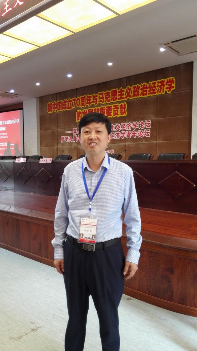 据本次论坛主办方介绍,今年正值新中国成立70周年,全面梳理和总结马克思主义政治经济学在中国的发展历程与重要贡献,深入研究70年来我国经济发展中的重大问题和当代资本主义相关议题,对于进一步推动中国特色社会主义政治经济学构建和马克思主义政治经济学理论丰富和发展具有重要现实意义。随后,与会代表重点围绕“政治经济学学科建设与青年发展”“新中国成立以来我国经济发展的历史变迁与基本经验”“马克思主义政治经济学中国化及其最新成果”“马克思主义政治经济学基础理论及其时代价值”“全球化转型中的国际政治经济格局与当代资本主义新变化”等议题作学术报告并展开热烈讨论。在分论坛二,许光伟研究员做了题为“中华思维学研究——中国风和中国经济学行动议程”的重点发言,报告了新近的中国经济学的研究思路和工作打算,引起与会者普遍的学术共鸣。在分论坛四,许光伟研究员还应邀对北京科技大学陈广亮老师的论文《马克思对资本属性与本质的科学诊断》、大连医科大学大学于泉蛟老师的论文《究竟应该如何理解经济因素对人类社会历史发展的决定作用》、吉林大学王人骏博士的论文《梅格纳德·德赛的“市场动力”理论及其当代价值》以及贵州财经大学杨珺珺同学宣读的论文《欧盟后危机时代的经济态势分析》进行了互动和点评。