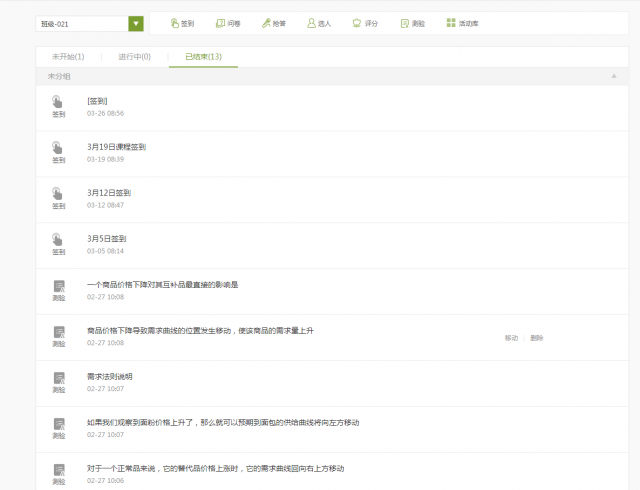 使用超星网络教学平台实现签到、点名、发布作业和发起讨论等一些操作。在签到方面,要求学生每节课都必须签到,课堂中间针对所讲知识点进行讨论,课堂测验等避免学生签完到之后就玩“失踪”。同时,通过不定时对学生点名回答问题,使学生保持适度的紧张感,防止学生上课时过于松懈。通过发布课堂测验的形式来发现学生在学习过程中出现的问题,同时也能巩固教学效果。