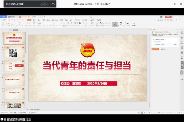 最后,夏贤锋书记邀请天美传媒 的刘梦想同学、国际学院的宝崇峰同学向入党积极分子分享抗疫经历。疫情期间,他们积极参与志愿服务活动,践行自己的理想信念,用行动展示青年的责任与担当。课程结束后,夏贤锋书记通过发表调查问卷的形式再次与大家进行深入的探讨,使入党积极分子对青年的责任与担当有了更深刻的理解。