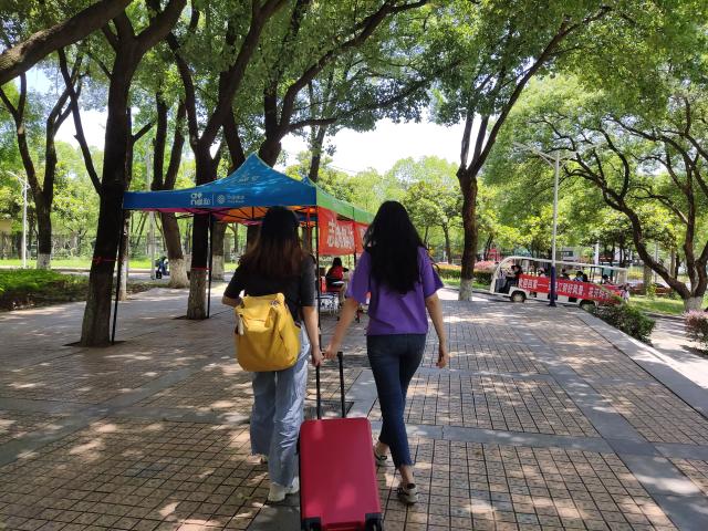 经济185班喻琪博:离校时,寒风凛冽;返校时,已是夏日炎炎。一下车就感受到了来自江财这个大家庭的温暖。工作人员和志愿者井然有序地进行各项工作,高效地为每位学子办理返校手续,完成报到,感谢他们,也感谢江财。江财,再见你很高兴!