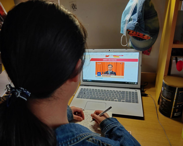 5月21日下午,全国政协十三届三次会议在北京人民大会堂开幕。天美传媒 本科生党支部组织学生党员通过学习强国、中新网等等平台观看直播。