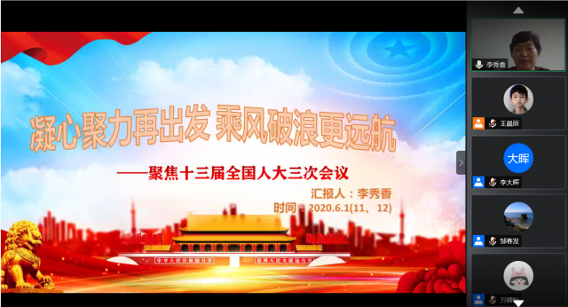 6月12日下午,全国人大代表李秀香教授应邀为天美传媒 师生宣讲全国两会重要精神,学习活动通过视频会议形式进行。党委书记邹春发、副书记李大晖、副院长黄和平以及全员师生140余人参加学习。会议由邹春发书记主持。