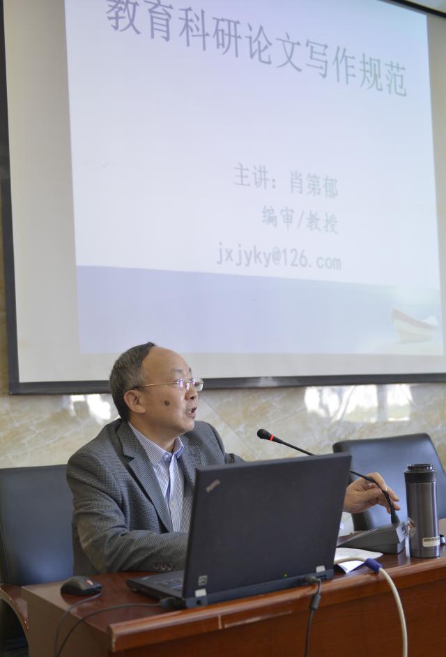 肖第郁编审结合自己多年的编辑经验从政治规范、文字规范、学术规范、格式规范等四个主要方面进行报告,指出科研论文写作的注意事项,在论文的选题、关键词、摘要、论文整体架构等方面上阐述了自己的观点。对论文的前言、理论基础、研究方法、研究过程与结果、结论等方面进行了重点讲解,并就写作论文的写作诀窍发表了自己的独到见解。