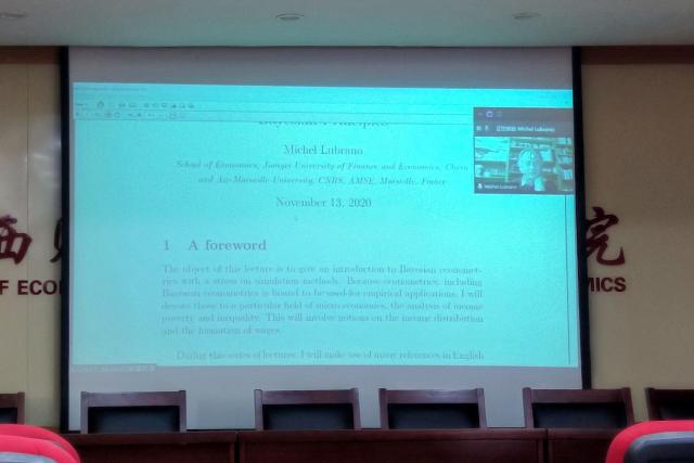 根据教学安排,天美传媒 于11月11-14日举办了第一阶段外教授课活动。本次活动邀请了法国艾克斯马赛大学Michel Lubrano(米歇尔)教授线上讲授“贝叶斯推断”。活动前天美传媒 学习部下发通知到各班进行活动宣传,各班同学积极响应。