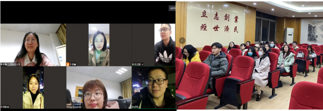 论坛第三环节(晚上6:30到9:00)采用线上加线下模型,除了线上的与会者和听众外,学院20多位研究生在天美传媒 718会议室参与会议。该环节由六位研究生——天美传媒 范文超、陈寰、林曦、何咪咪、龚晓宇、洪玮——从环境规制与经济发展等方面分享了他们最新的英文论文。