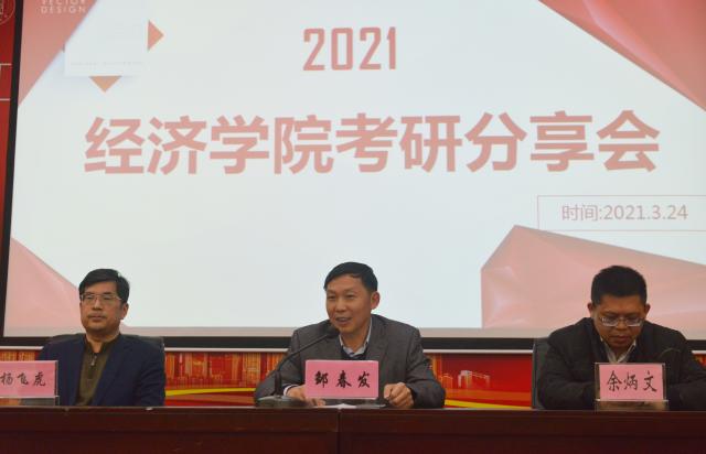 分享会上,邹春发书记以经院上一年的考研成功率出发,围绕着“是否考研”、“考什么学校”和“如何复习”三个问题与同学们展开分析。首先,邹书记认为同学们应根据自身情况决定是否考研,避免“跟风考研”,有明显短板、没有明确目标的同学没有考研的必要;其次,他认为在报考学校时要考虑自身水平,拒绝“扎堆报考”和“攀比报考”,他还强调,在求职时学校不是最重要的,专业和能力才是关键;最后,在给同学们提供复习建议时,邹书记提了如下三点建议:第一,根据自己的基础和生物钟形成自己的学习方法。第二,要有艰苦卓绝的毅力,少睡少玩多吃苦。第三,确定目标后要有坚定的信心,“战略上藐视敌人,战术上重视敌人”,系统、认真地展开复习。