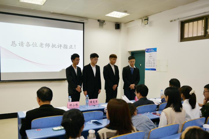 会中,九支队伍依次上台,通过PPT的形式向观众展示自己的参赛作品,介绍完毕后,三位导师进行提问,选手进行答辩。选手们身着正装,就各自队伍的创意和主题在讲台上侃侃而谈,大放异彩;三位导师根据选手展示的内容从核心竞争力、目标定位、技术基础等方面对各个队伍的策划内容进行指导,打出犀利指正和诚恳建议的“组合拳”,使现场的选手和观众受益颇丰。答辩会的最后,黄茂军老师首先从PPT的精美制作和选手们的自信风采两个方面肯定了选手们的勇气和努力,随后指出了部分团队在撰写商业企划书时的基本格式错误和项目内容的可行性不高两个缺点,并就此提出两点意见:第一,多多参考往年优秀的获奖作品,从中汲取经验,启发灵感;第二,同学们如果想要在“互联网+”大赛中获奖,就需要厚积薄发的努力和实践,“真正去做了,才有往后走的可能性”。