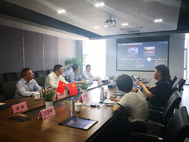 为加快推进天美传媒 数字经济新专业建设,深入推动产学研一体化,5月8日下午,在张利国院长带领下,胡德龙副院长、李国民副院长、杨勇主任和裘莹主任前往位于九龙湖绿地博览城的江西省数字技术领军企业——数字江西科技有限公司进行调研与座谈。数字江西科技有限公司CEO冯晶晶、阿里巴巴集团战略发展部江西总监王晶、数字江西科技有限公司董助张雪松、商业运营部经理王正坤以及人力资源部经理殷雅婷参加了调研和座谈活动。