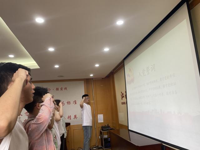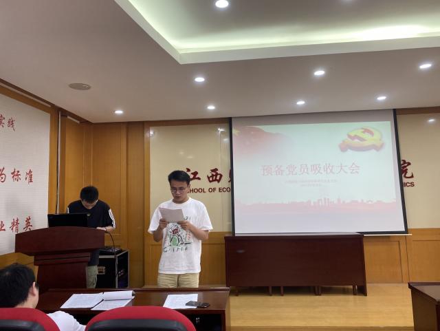本次发展大会严格按照流程进行。会议第一项,由主持人宣布会议注意事项及党员到场情况。其后,符合成为预备党员要求的九名发展对象分别上台宣读入党申请,从总结过往经历到制定未来计划,各方面表明了自身为发挥先锋模范作用做好充分准备的决心。每位发展对象的入党介绍人结合其实际情况做了详尽陈述。随后支部代表发表意见,该九名同志积极参加政治学习,按时汇报思想,较好地完成了组织交予的各项任务。经统计票数,支部书记杨柳宣布同意吸收王周慧等九名同志为中共预备党员。入党介绍人为其发展对象佩戴党徽,并举行了庄重严肃的宣誓仪式。