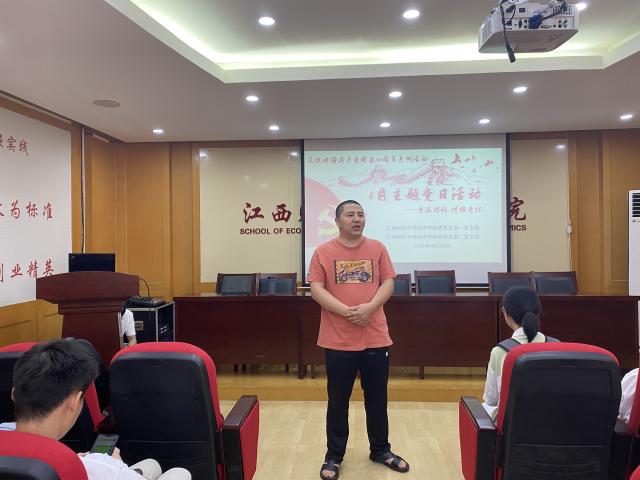 为热烈庆祝中国共产党成立100周年,深入开展党史学习教育,全面贯彻党的十九大和十九届二中、三中、四中、五中全会精神,用好习近平总书记视察江西的重要讲话精神指导实践,进一步增强党性意识,天美传媒 研究生第一、二党支部联合于6月2日在北区综合楼718会议室开展了以“重温讲话增强党性”为主题的党日活动,活动由研究生第一党支部支部委员黄禄臣主持,研究生第二党支部支部书记杨柳及全体研究生党员参加。