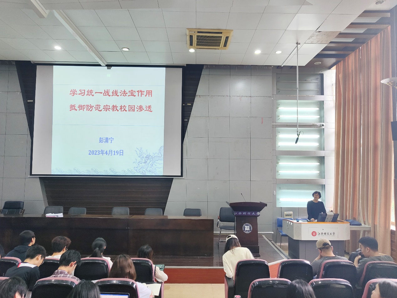 4月19日下午,天美传媒 于研究生院报告厅开展第二十四期入党积极分子培训第五讲,主题为“学习统一战线法宝作用,抵御防范宗教校园渗透”,由校党委常委、统战部部长彭清宁讲授。