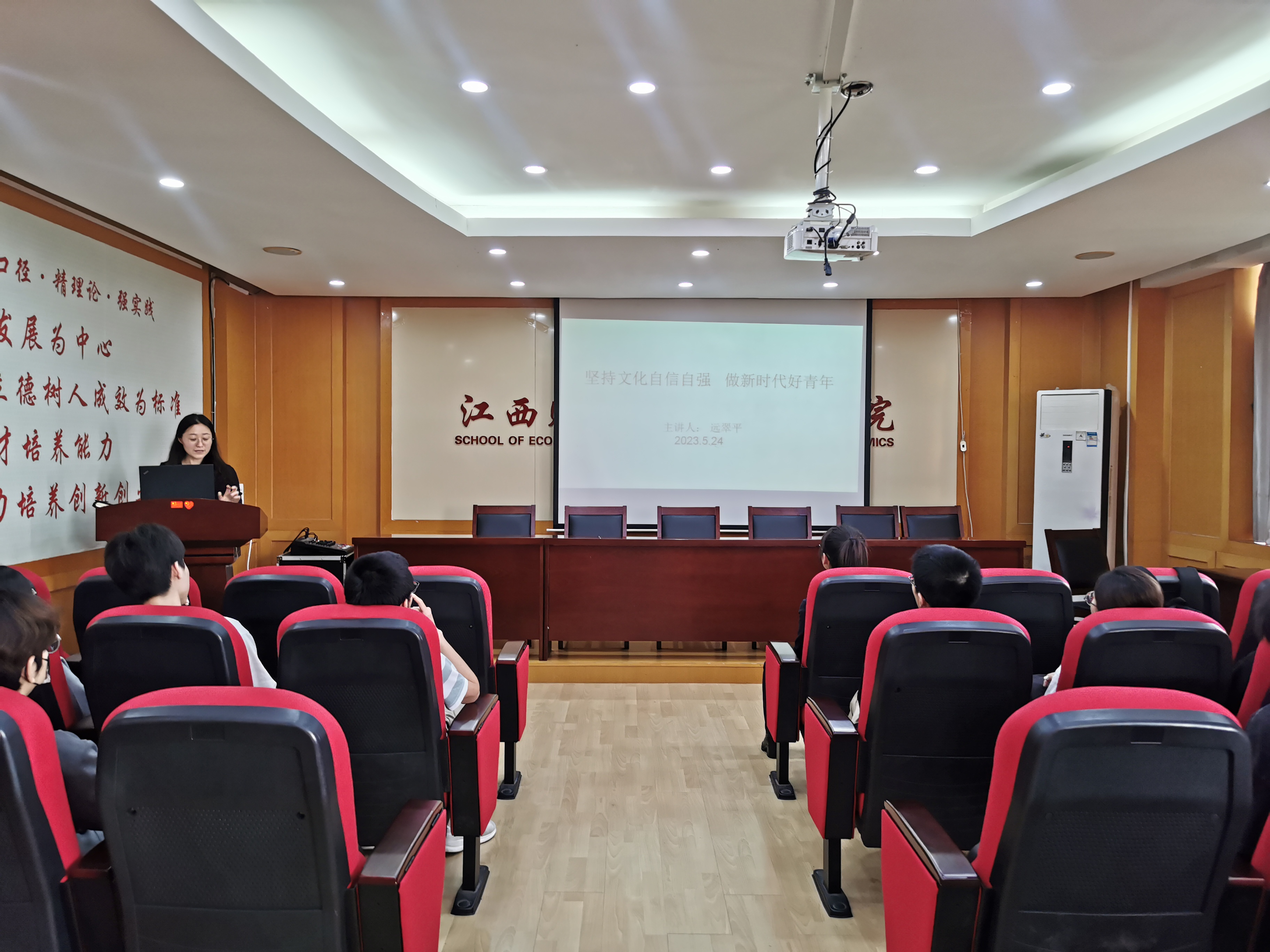 为加强学生思想政治教育,提高学生的理论素养,5月24日,学院党委副书记远翠平为学生党员及学生代表讲授“坚持文化自信自强,做新时代好青年 ”主题教育专题党课。