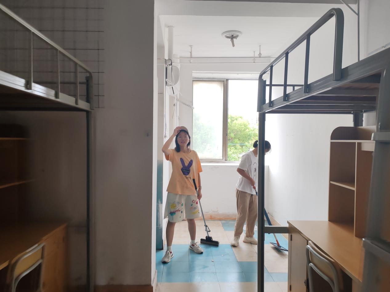 清扫完毕后,负责人对清扫成果进行验收。经过大家的努力,整个新生宿舍焕然一新,地面光滑如镜、窗户明亮如洗、桌面整洁如新······。