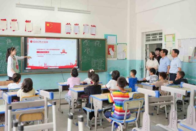 袁红林副校长一行来到阿克陶县克孜勒陶镇中心学校,与正在开展红领巾课堂的师生们亲切交谈,观摩了书法课堂、安全课堂、国学课堂、历史课堂等六个班的教学情况,对队员们将专业特长运用到实践教学中的表现给予肯定,并鼓励孩子们努力学习,长大后为建设家乡贡献力量。