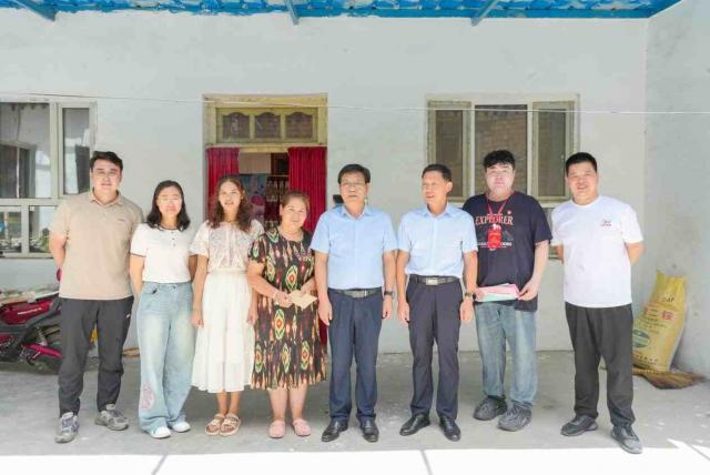 校领导一行先后驱车一百多公里来到22级天美传媒 麦冉萨古·伍斯曼江和22级财税与公共管理学院热伊木·玉素甫江家中进行走访慰问,并送去慰问金。
