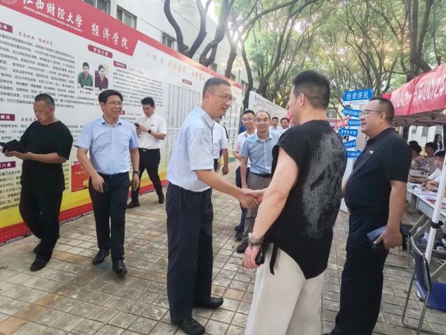 校党委书记刘耀彬与2024级新生及家长展开亲切交流,悉心解答家长们关切的问题。“老家在哪里?以前来过南昌吗?”刘耀彬向他们介绍江财基本情况,并请家长们放心。他表示,2024级新同学是学校的新生力量,希望同学们能够早日融入新校园,尽早适应大学生活!
