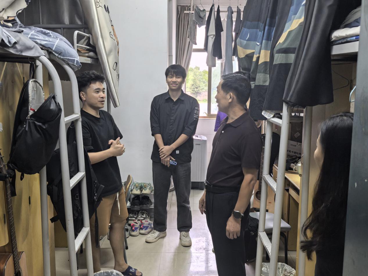 在学生宿舍,邹春发书记详细询问了留校学生的学习生活情况,对同学们的努力与付出表示肯定和鼓励。他强调,学院始终关心每一位同学的成长与发展,希望同学们能够珍惜在校时光,努力学习,不断提升自我。在毕业班寝室,邹书记了解了毕业生的求职就业情况,鼓励他们要保持积极乐观的心态,勇于面对挑战,争取早日找到心仪的工作。每到一个宿舍,邹书记都不忘提醒同学们要时刻注意安全,不要乱拉电线,不要使用大功率电器。
