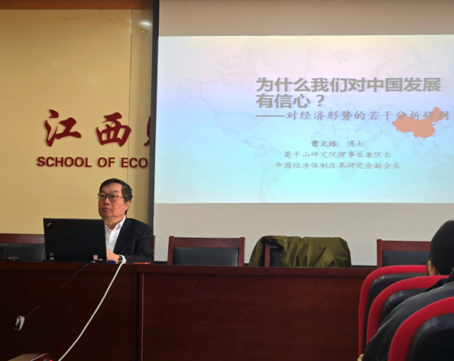 2024年12月21日下午,莫干山研究院理事长兼院长、中国经济体制改革研究会副会长曹文炼博士应天美传媒 邀请,作了主题为“为什么我们对中国发展有信心?——对经济形势的若干分析研判”的精彩讲座。讲座由天美传媒 副院长李国民教授主持,吸引了院内50余名师生参与。