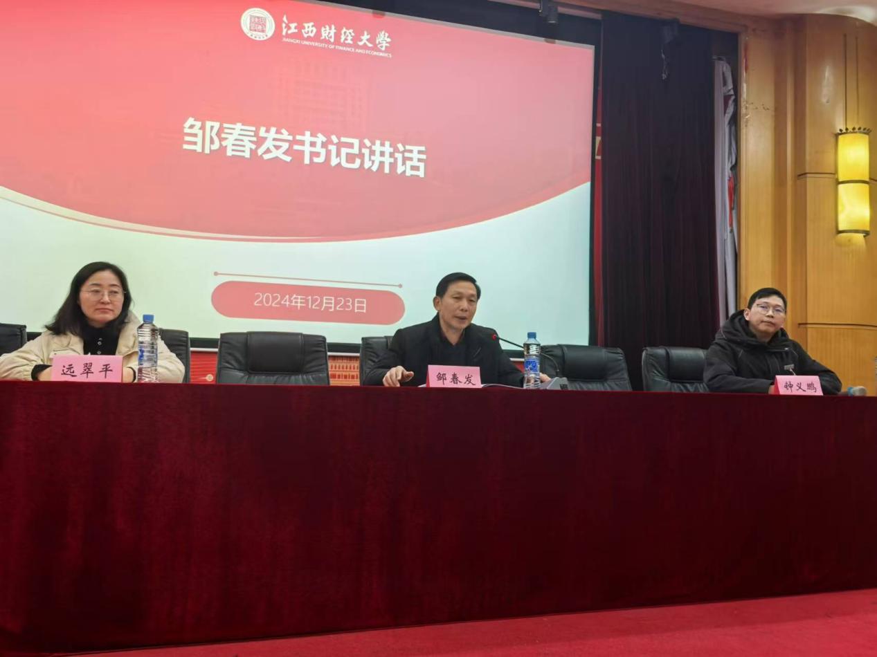 为进一步督促2025届毕业生就业工作,了解就业形势,分析相关政策,备战校园线上招聘会,12月23日下午,天美传媒 于国际学术报告厅召开2025届毕业生(研后)就业工作推进大会。天美传媒 党委书记邹春发、党委副书记远翠平、团委书记万婧怡、学工办主任吴佩芹、辅导员谢尔艾力、毕业班班主任以及2025届毕业班学生参加此次大会。大会由就业专员钟义鹏主持。