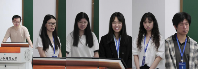 在下半场的汇报环节中,共有5名同学分享他们的研究。天美传媒 胡睿娟同学分享了空间视角下数字普惠金融对农村增收减贫的机制研究;重庆理工大学方海燕同学从现状、意义、路径三重维度分析了习近平新时代中国特色社会主义思想在国际上的传播;天美传媒 裘金花同学分享了乘“数”而上:数据要素市场化赋能企业创新;天美传媒 李雅婷同学分享了公共数据开放与行政边界地区污染的关系;天美传媒 王梦茹同学分享了新质生产力的内在逻辑、价值意蕴及实践路径。会议评审专家分别从理论研究的深度、实证研究的规范性、PPT展示细节等多个方面进行点评并提出改进建议。