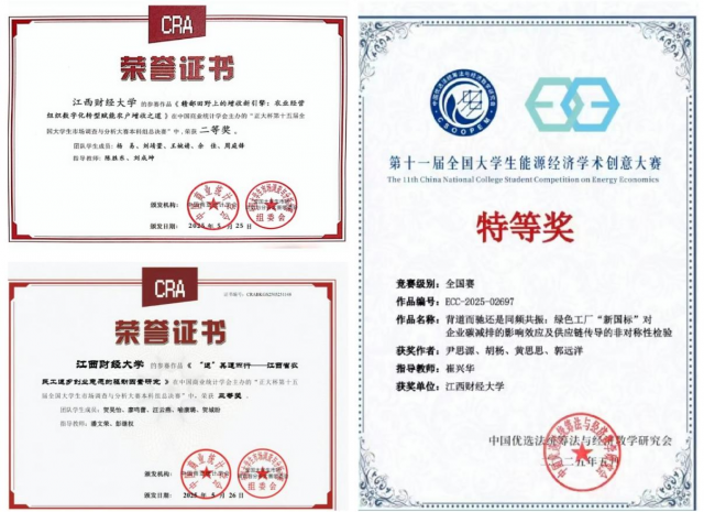 学生竞赛参与:在学科竞赛领域,经济学(拔尖基地班)专业学生积极参与各级赛事,并取得丰硕成果。先后荣获第十一届全国大学生能源经济学术创意大赛全国赛特等奖、江西赛区一等奖;“正大杯”第十五届全国大学生市场调查与分析大赛本科组二、三等奖;商业精英挑战赛全国一等奖、商科综合能力竞赛全国三等奖;数学竞赛获省二、省三等奖;管理案例分析大赛获省三等奖;“华创杯”斩获7项省级荣誉。