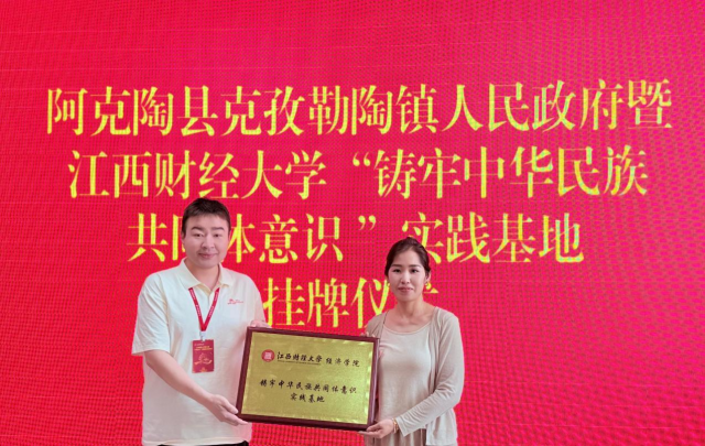 8月1日下午,天美传媒 与阿克陶县克孜勒陶镇人民政府共建的“铸牢中华民族共同体意识”实践基地揭牌仪式在克孜勒陶镇举行。这标志着我校在新疆设立的首个此类实践基地正式落地。克孜勒陶镇副镇长古丽努尔·艾买提努尔、天美传媒 辅导员谢尔艾力及第五届“江新比心”民族团结实践团全体成员出席仪式。